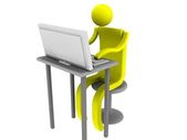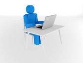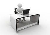 Biznesmen z laptopa pokazuje Doradca Biz i informacje