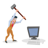 Biznesmen zły wskazuje informatyka Internet klawiatura