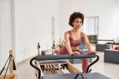 Zdjęcie "Kobieta w różowej bluzce ćwiczy na wioślarzu." może być wykorzystywane do celów osobistych i komercyjnych zgodnie z warunkami zakupionej licencji Royalty-free. Obraz jest dostępny do pobrania w jakości wysokiej rozdzielczości do 5760x3840.