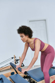 Atrakcyjna kobieta intensywnie ćwiczy obok swojego przyjaciela.