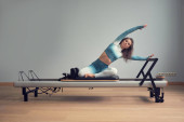 Zdjęcie "Sportowa kobieta wykonująca ćwiczenia pilates." może być wykorzystywane do celów osobistych i komercyjnych zgodnie z warunkami zakupionej licencji Royalty-free. Obraz jest dostępny do pobrania w jakości wysokiej rozdzielczości do 5760x3840.