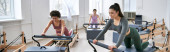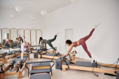 Pasujące kobiety uczestniczące w treningu pilates na siłowni.