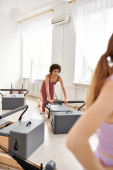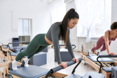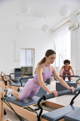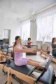 Dobrze wyglądające sportowe kobiety ćwiczące podczas lekcji pilates.