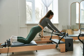 Atrakcyjne kobiety angażują się w zajęcia pilates, koncentrując się na elastyczności i sile rdzenia.