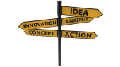 Koncepcja, burzy mózgów, rozwiązanie i pomysł słowa na strzałkę znaki
