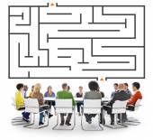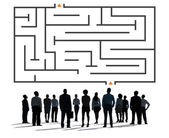 Labirynt kierunkach, ludzi biznesu, rozwiązanie, pracy zespołowej