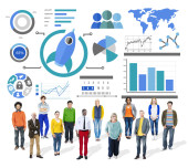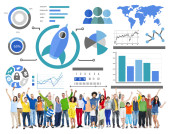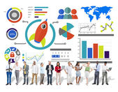 Nowy biznes, wykresy, innowacyjności i pracy zespołowej