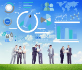 Nowy biznes, wykresy, innowacyjności i pracy zespołowej