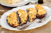 Zdjęcie "Nadziewane bakłażan połówki" może być wykorzystywane do celów osobistych i komercyjnych zgodnie z warunkami zakupionej licencji Royalty-free. Obraz jest dostępny do pobrania w jakości wysokiej rozdzielczości do 5760x3840.