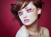 Piękna kobieta portret moda fryzury i kreatywnych modny makijaż