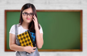 Azjatyckie panienki z prośbą o ciszy, na zielonym tle