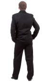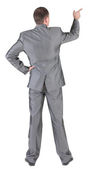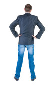 Widok zszokowana i przerażona młody biznesmen z tyłu. trzyma ręce