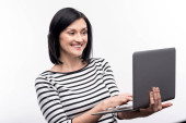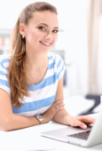 Zdjęcie "Młoda kobieta korzystająca z komputera" może być wykorzystywane do celów osobistych i komercyjnych zgodnie z warunkami zakupionej licencji Royalty-free. Obraz jest dostępny do pobrania w jakości wysokiej rozdzielczości do 5760x3840.