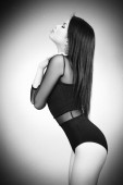 Sexy kobieta portret noszenie bielizny podczas stwarzające czarno -białych