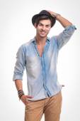 Zdjęcie "Uśmiechnięty mężczyzna moda młody pozowanie" może być wykorzystywane do celów osobistych i komercyjnych zgodnie z warunkami zakupionej licencji Royalty-free. Obraz jest dostępny do pobrania w jakości wysokiej rozdzielczości do 5760x3840.