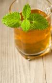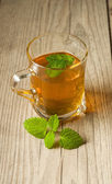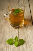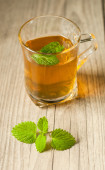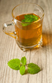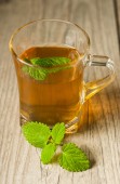 filiżanka herbaty z mięty na drewnianym stole