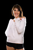 portret seksowny uśmiechający się młoda kobieta. na białym tle
