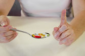 jedzenia leki, tabletki na danie z łyżka i widelec