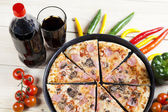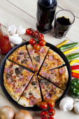 Zdjęcie "świeżej pizzy." może być wykorzystywane do celów osobistych i komercyjnych zgodnie z warunkami zakupionej licencji Royalty-free. Obraz jest dostępny do pobrania w jakości wysokiej rozdzielczości do 5760x3840.