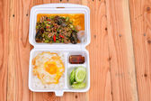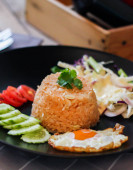 Smażony ryż smażone jajka (tajski żywności) na stole kamień