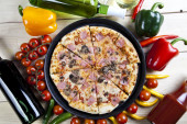 Zdjęcie "świeżej pizzy." może być wykorzystywane do celów osobistych i komercyjnych zgodnie z warunkami zakupionej licencji Royalty-free. Obraz jest dostępny do pobrania w jakości wysokiej rozdzielczości do 5760x3840.