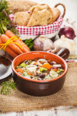 Obszarów wiejskich wegetariańska rosół zupa z kolorowych warzyw i rustykalne