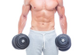 Zdjęcie "Lekkoatletycznego mężczyzna z hantlami na biały" może być wykorzystywane do celów osobistych i komercyjnych zgodnie z warunkami zakupionej licencji Royalty-free. Obraz jest dostępny do pobrania w jakości wysokiej rozdzielczości do 5760x3840.