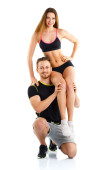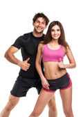 Atrakcyjna para sportu - mężczyzna i kobieta robi ćwiczenia fitness