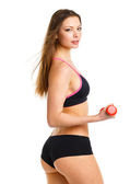 Kobieta piękna sport z hantlami robi treningu sportowego, isola