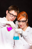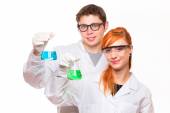 Dwóch chemików z rurkami w laboratorium