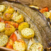 Cały dorsz z warzywami