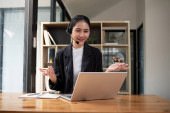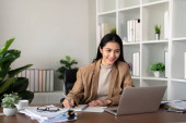 Zdjęcie "Młoda bizneswoman nosząca słuchawki i omawiająca szczegóły projektu z klientami na rozmowie wideo. kobieta ze słuchawkami prowadząca spotkanie online z kolegami." może być wykorzystywane do celów osobistych i komercyjnych zgodnie z warunkami zakupionej licencji Royalty-free. Obraz jest dostępny do pobrania w jakości wysokiej rozdzielczości do 5760x3840.