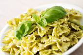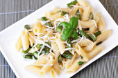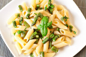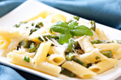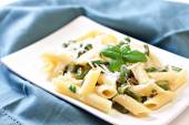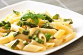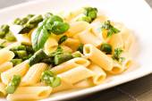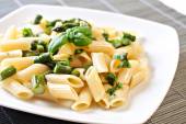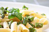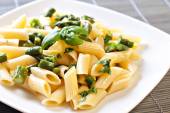 Makaron ze szparagami na talerzu