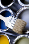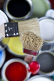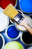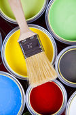 puszki z farbą z pędzel