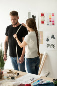 Dwóch zakochanych mężczyzn, kreatywnie współpracujących nad kawałkiem papieru przy stylowym stole.