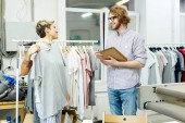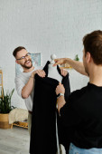 Dwóch mężczyzn, para gejów, zaangażowanych w tworzenie modnych strojów w warsztacie projektanta.