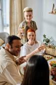 Zdjęcie "Lesbijki para i różnorodne przyjaciele korzystających posiłek przy stole." może być wykorzystywane do celów osobistych i komercyjnych zgodnie z warunkami zakupionej licencji Royalty-free. Obraz jest dostępny do pobrania w jakości wysokiej rozdzielczości do 5760x3840.