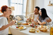 Różni przyjaciele zbierają się na kanapie, w tym kochająca para lesbijek.