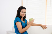 Kobieta z Pucharu patrząc na kamery