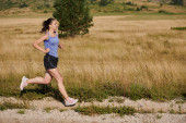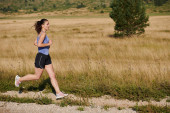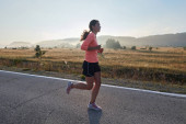 Zdjęcie "Deszcz czy blask, dedykowany maratończyk przez swój bieg treningowy, jej oczy skupione na mecie. " może być wykorzystywane do celów osobistych i komercyjnych zgodnie z warunkami zakupionej licencji Royalty-free. Obraz jest dostępny do pobrania w jakości wysokiej rozdzielczości do 5760x3840.