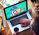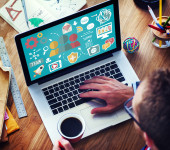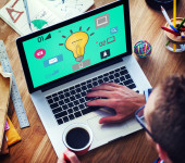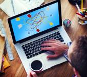biznesmen pracujący na laptopie