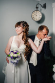 Wesele taniec młodej i pana młodego w sali konferencyjno-bankietowe. Pocałunek, uścisk