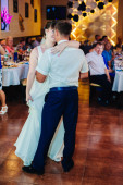 Zdjęcie "Wesele taniec młodej i pana młodego w sali konferencyjno-bankietowe. Pocałunek, uścisk" może być wykorzystywane do celów osobistych i komercyjnych zgodnie z warunkami zakupionej licencji Royalty-free. Obraz jest dostępny do pobrania w jakości wysokiej rozdzielczości do 5760x3840.