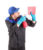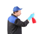 Zdjęcie "Pracownik posiadający sprayem i myjka." może być wykorzystywane do celów osobistych i komercyjnych zgodnie z warunkami zakupionej licencji Royalty-free. Obraz jest dostępny do pobrania w jakości wysokiej rozdzielczości do 5760x3840.