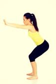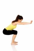 Zdjęcie "młoda kobieta wykonuje przysiady." może być wykorzystywane do celów osobistych i komercyjnych zgodnie z warunkami zakupionej licencji Royalty-free. Obraz jest dostępny do pobrania w jakości wysokiej rozdzielczości do 5760x3840.