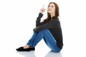 Zdjęcie "Kobieta siedząca krzyż legged z otwartej dłoni." może być wykorzystywane do celów osobistych i komercyjnych zgodnie z warunkami zakupionej licencji Royalty-free. Obraz jest dostępny do pobrania w jakości wysokiej rozdzielczości do 5760x3840.