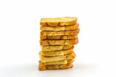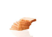 krojonego chleba na desce do krojenia na białym tle