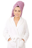 Zdjęcie "Kobieta w szlafrok i krem nawilżający." może być wykorzystywane do celów osobistych i komercyjnych zgodnie z warunkami zakupionej licencji Royalty-free. Obraz jest dostępny do pobrania w jakości wysokiej rozdzielczości do 5760x3840.