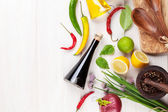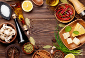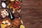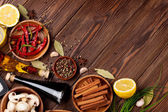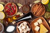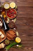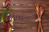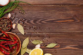 różne przyprawy na drewnianym tle