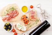 Zdjęcie "Bruschetta z serem i prosciutto" może być wykorzystywane do celów osobistych i komercyjnych zgodnie z warunkami zakupionej licencji Royalty-free. Obraz jest dostępny do pobrania w jakości wysokiej rozdzielczości do 5760x3840.